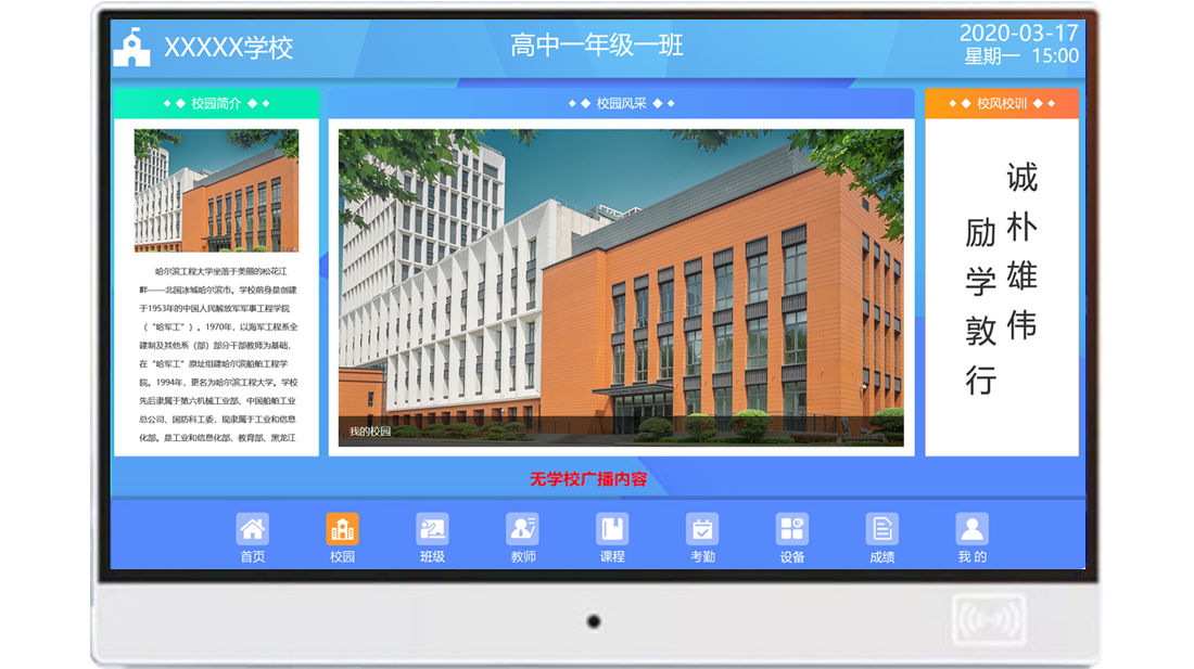 對所在班級的課程安排以及學校的作息時間的展示,讓師生合理安排時間,增強時間觀念。